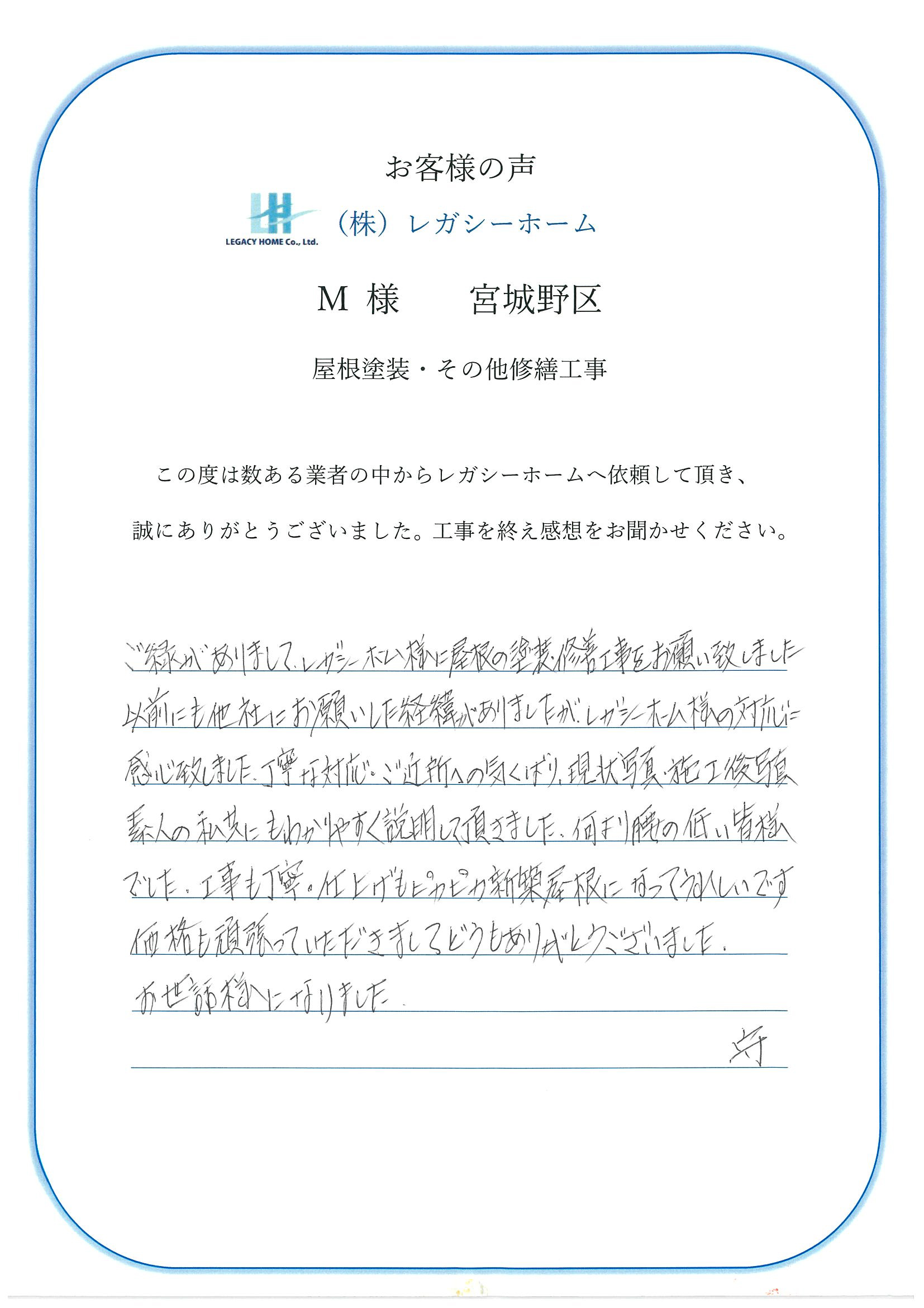 M様  仙台市太白区